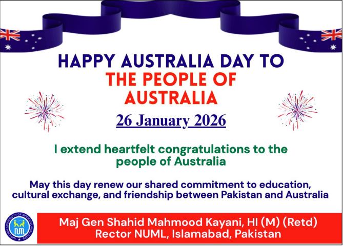 On 7 May at 11:00 AM, the Department of Russian Language organized a solemn event to commemorate the 80th anniversary of the Great Patriotic War. Students also recited Russian patriotic poems and performed a popular wartime song “Katyusha” dedicated to the Victory Day, evoking strong emotional responses from the audience.The ceremony concluded with a compelling address by the Director General of NUML, Brigadier Shahzad Munir.